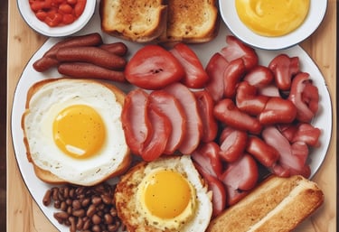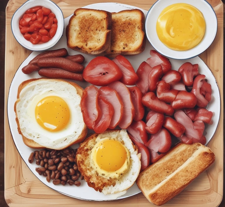 Bacon, Sausage, Egg, Hashbrown, Grilled Tomato, Beans, Mushroom and Toast