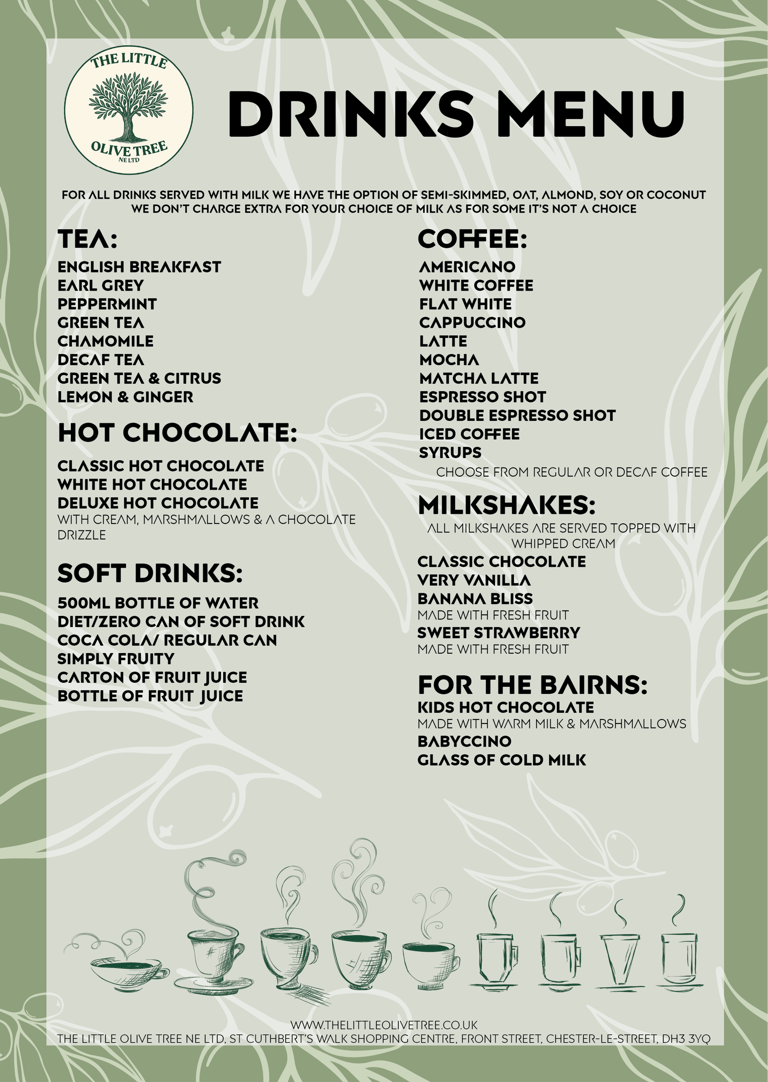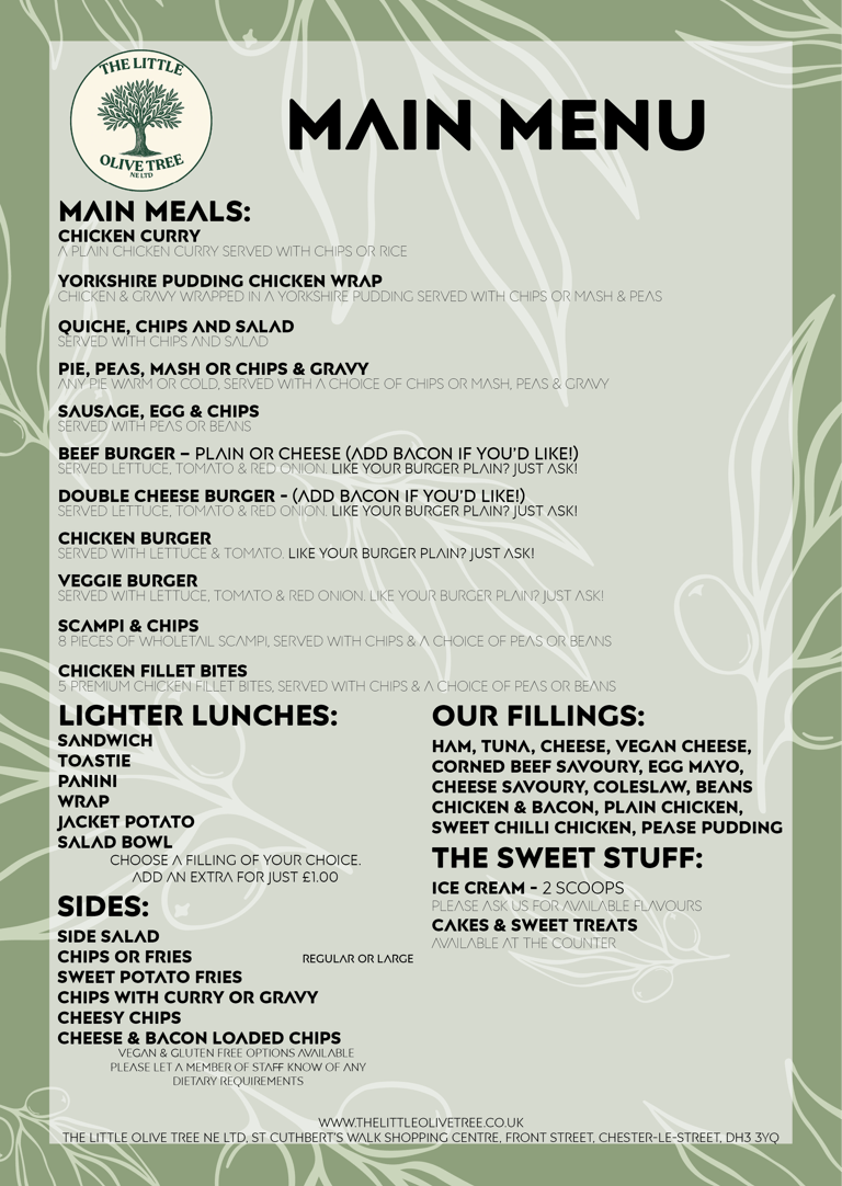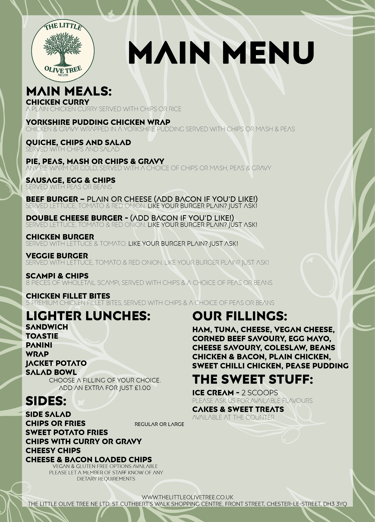 Take a look at our menu below to see some of the delicious food we serve.